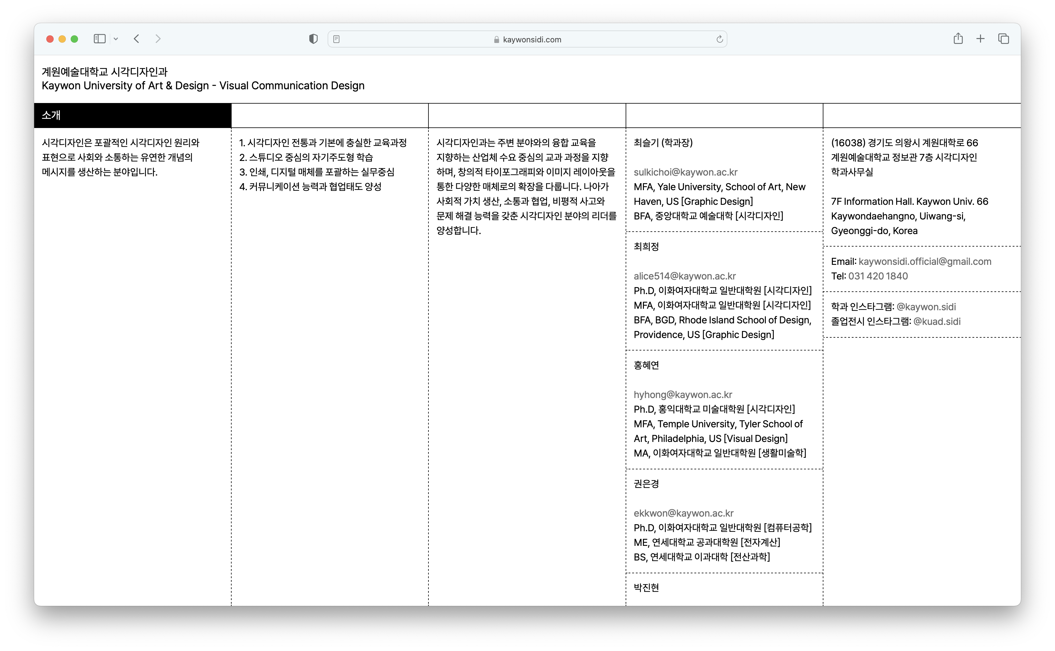 계원예술대학교 시각디자인과 웹사이트 리뉴얼