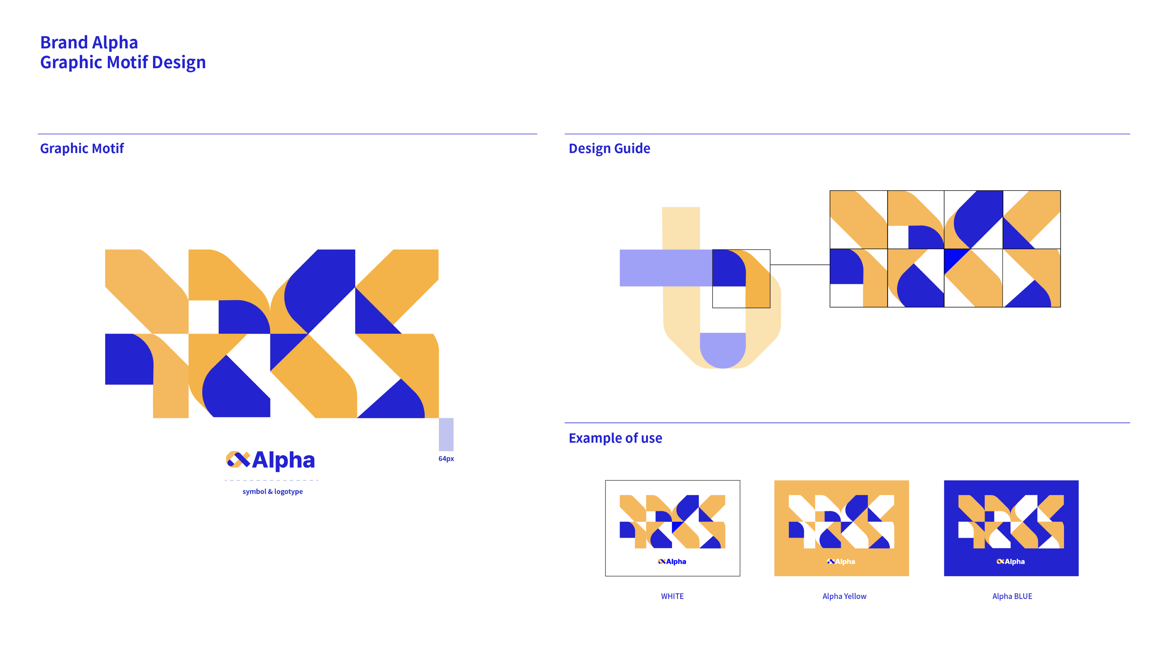 알파의 사전적 의미인 그리스 문자의 첫째 자모와 문구 브랜드의 특징을 조합해 새로운 브랜드 컨셉을 제안한다. 알파의 기호와 문구류중 하나인 양면 색종이를 결합하여 브랜드의 메인 아이덴티티를 담아낼 수 있는 로고를 제작했다.